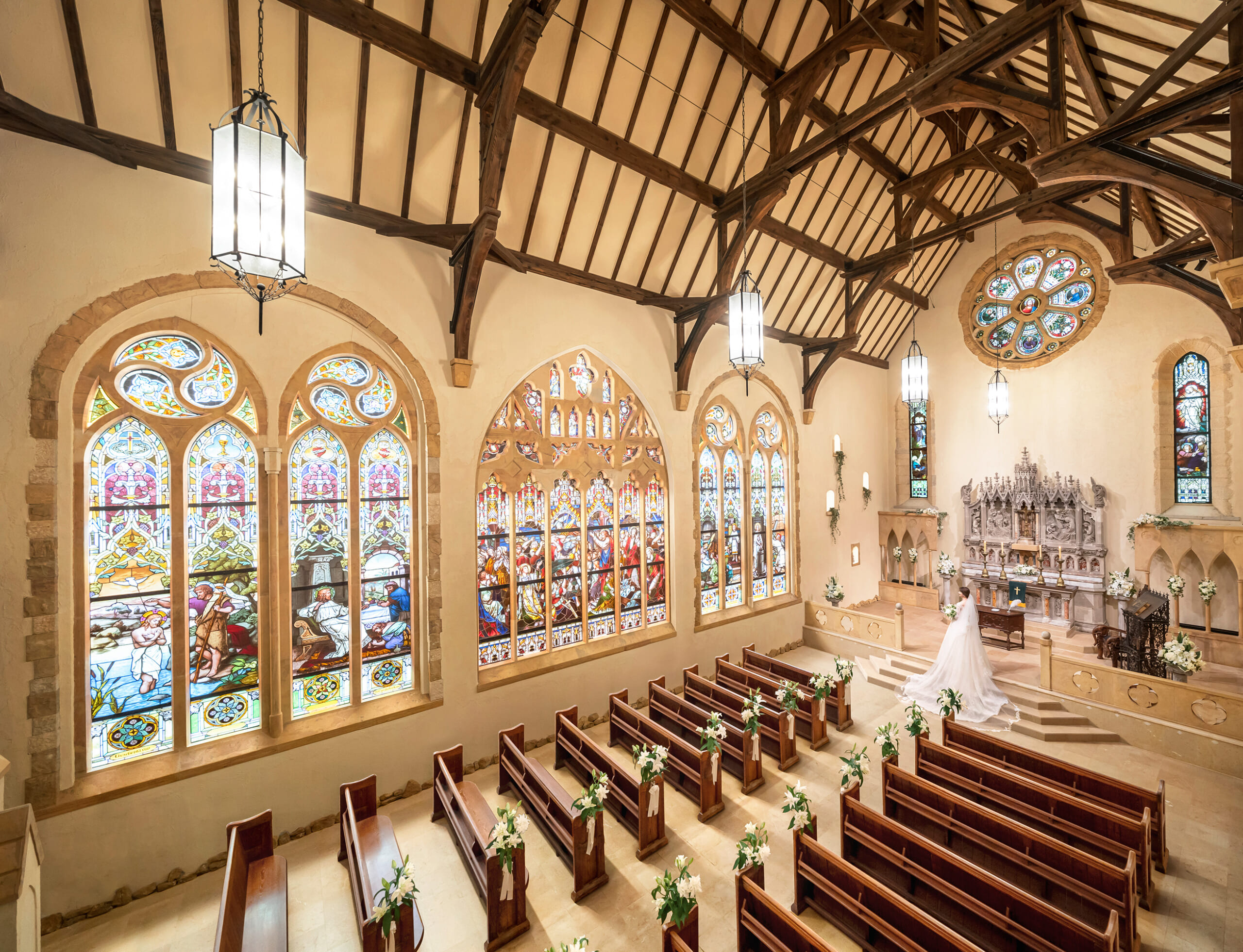最大の魅力は、英国から譲り受けた本物のアンティークステンドグラスが輝く、本格的な礼拝堂でのセレモニー。