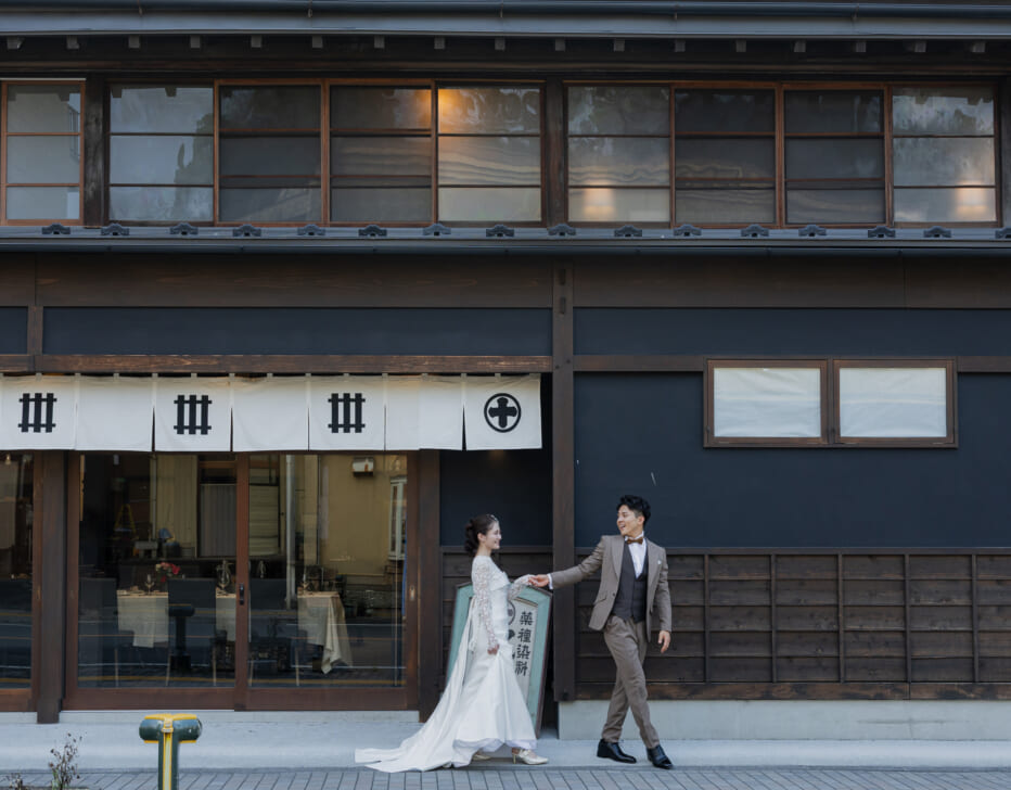 秩父の門前町に点在する、時を重ねた歴史建築を舞台にした結婚式。「旅するように過ごす結婚式」をコンセプトに、泊まる・祝う・味わうを一体で叶える、NIPPONIA 秩父 門前町の滞在型レトロウエディング。