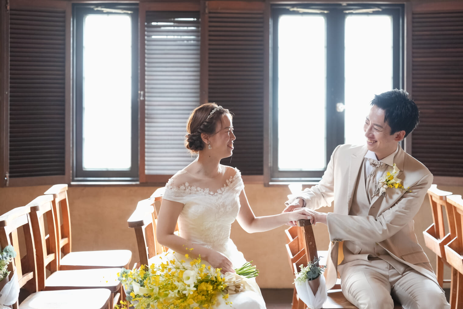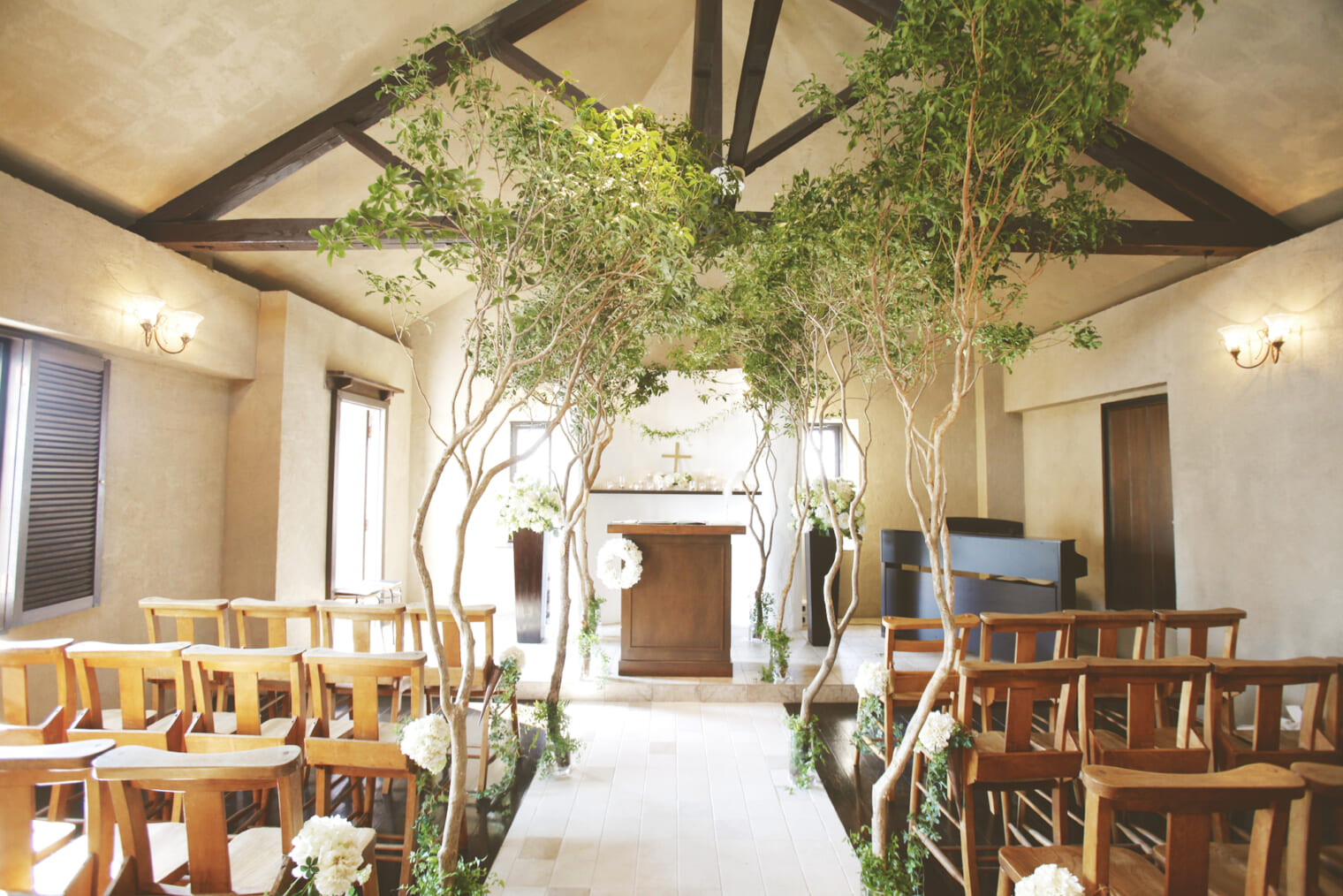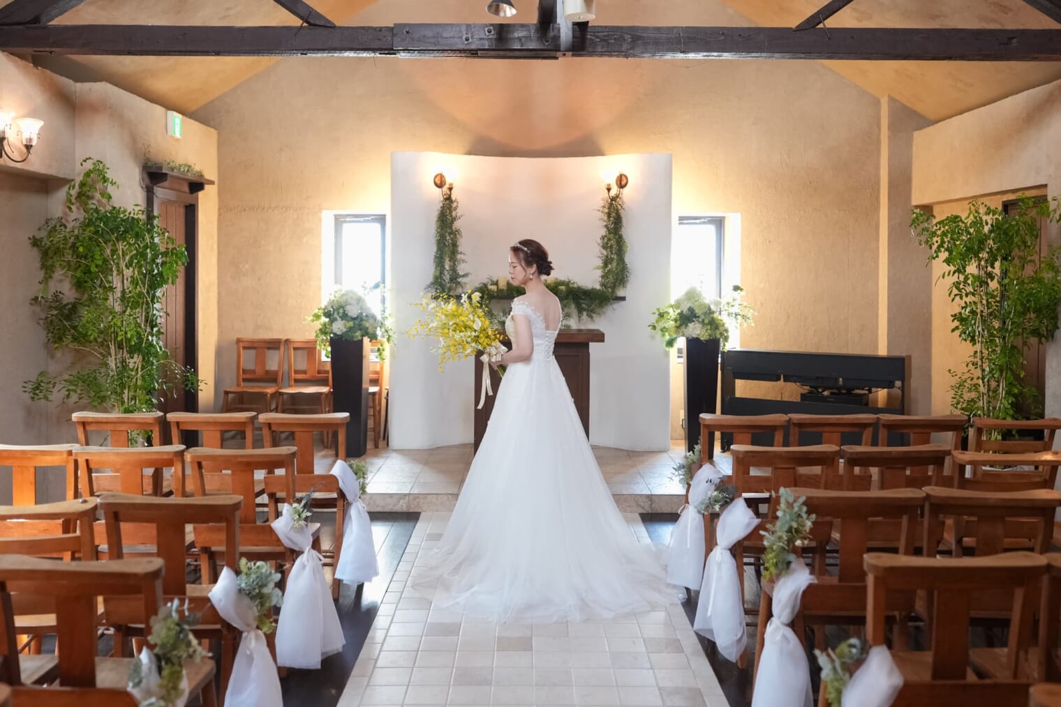 ゲストと近くアットホームな挙式が叶う場所。木のぬくもりが感じられるあたたかなチャペルはふたりの素晴らしい門出を見守ってくれます。