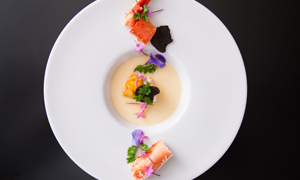 日本料理の繊細な技法とフレンチの華やかさを融合させた、アンクィール自慢の「和洋折衷」。厳選された旬の食材を使用し、すべてのコースをお箸でお召し上がりいただけます。慣れ親しんだお箸での食事は、ご年配のゲストからお子様まで肩肘張らずに楽しめると好評。美味しいお料理と記憶に残るあたたかな時間になります。