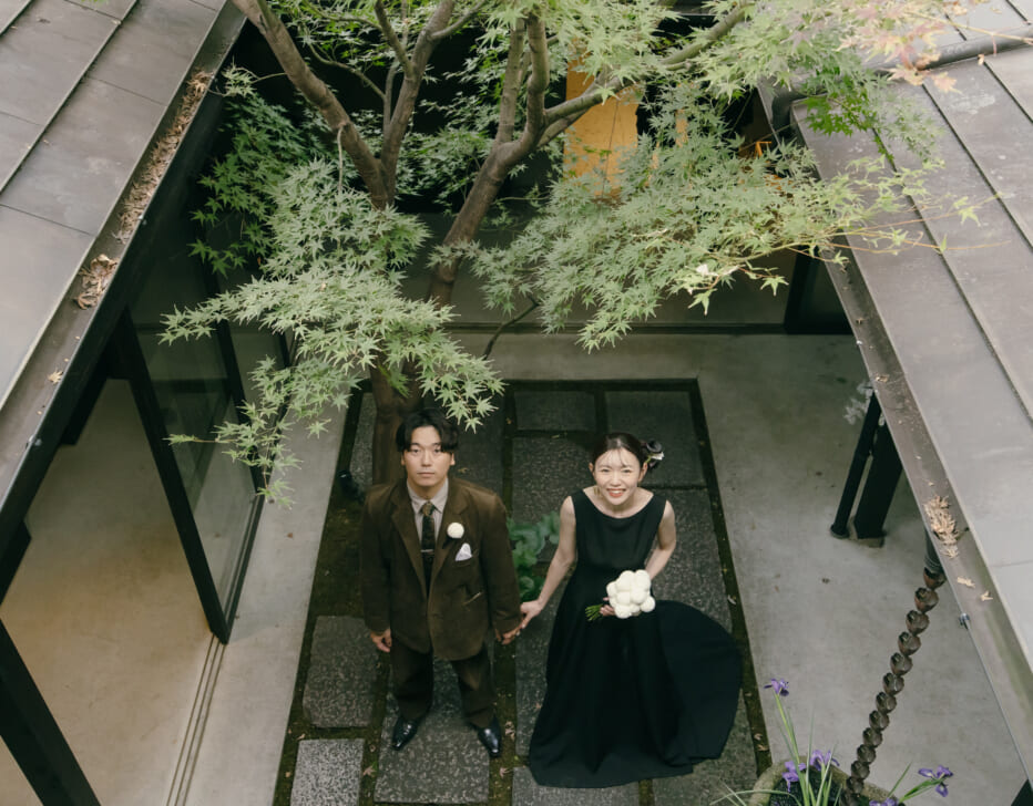 名勝庭園の「神苑」は広大な緑が広がり、その中でのお写真撮影や、庭園を眺めながらのパーティも素敵な時間に。パーティ会場は和装はもちろん洋装も映えますよ!